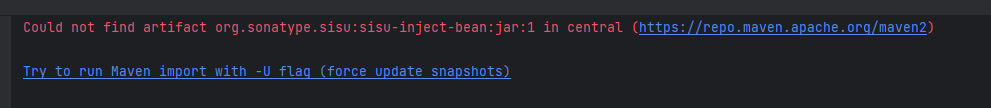 Could not find artifact org.sonatype.sisu:sisu-inject-bean:jar:1 in central (https://repo.maven.apache.org/maven2)