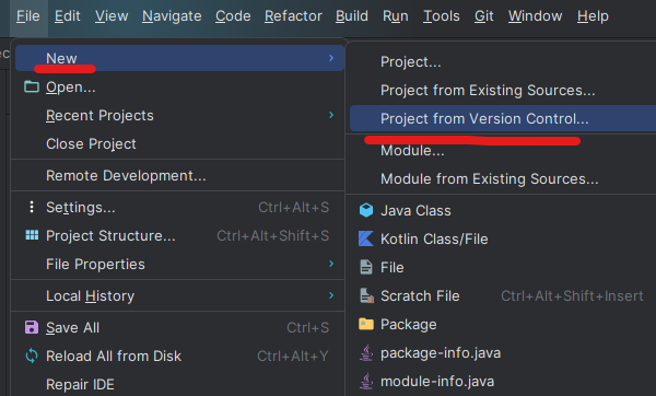 그리고 인텔리제이로 가서 [New] - [Project from Version Control...] 클릭!!