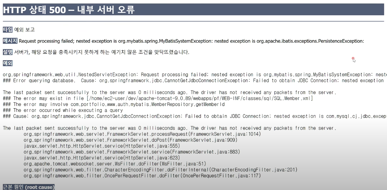 수동배포로 서버에 프로젝트를 올리고 해당 페이지 연결 도중이 일어난 에러