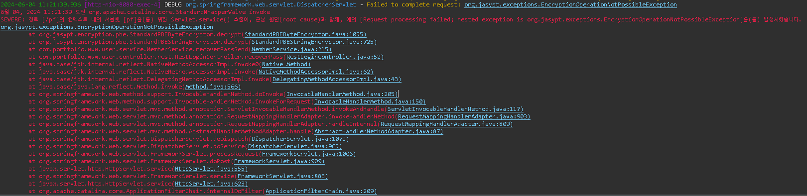[Jasypt] nested exception is org.jasypt.exceptions.EncryptionOperationNotPossibleException 본문